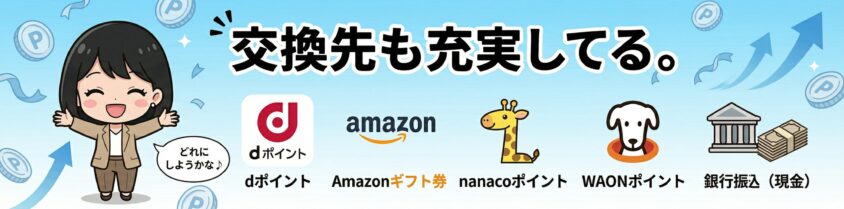1ポイント=1円、50円から手数料無料で交換できる手軽さ